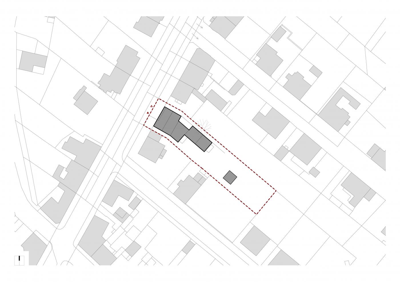 Podélná osa úzké hloubkově orientované parcely směřuje od severozápadu k jihovýchodu. Pozemek je bez výraznějších výškových rozdílů, zvolna stoupá od chodníku směrem ke stávajícímu objektu. Okolní zástavba je tvořena převážně jedno a dvoupodlažními objekty kompaktních tvarů se sedlovými či valbovými střechami, mnohdy doplněnými o původně hospodářské trakty či samostatné objekty orientované do zahrad.